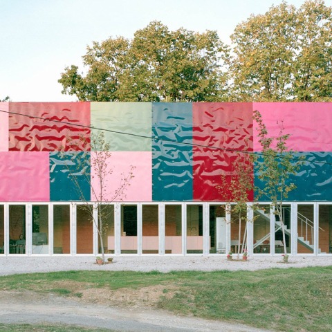 La gran fachada con veinte puertas que se abren hacia la calle hace que la casa sea accesible y acogedora. Al abrirse por completo, estas puertas crean un umbral de 25 metros que permite el acceso al paisaje. Estas características crean yuxtaposiciones improbables, promoviendo la visibilidad del nuevo hogar para sus habitantes: un lugar que los celebra y donde ellos pueden celebrar. El diseño de la fachada confiere a la casa un carácter inesperado y no residencial, ofreciendo una cálida bienvenida a todos.