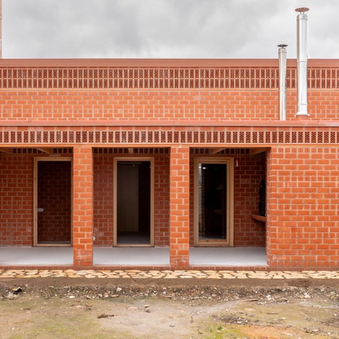 Una vez aprendidas estas cuestiones, el proyecto plantea una aproximación puramente material. Todo lo construido es estructura. Desde la cimentación, hasta la coronación del muro trabajamos con la arcilla como material de construcción. El ladrillo y sus reglas pautan el espacio. El espacio está trabado, construye una arquitectura de límite y umbral. Una arquitectura que se percibe por fragmentos, en discontinuidad. Esta aproximación nos permite utilizar un ladrillo común (ladrillo acústico db10 de cerámica sampedro, en Lardero), y elevar su dignidad como material de construcción. En definitiva, la arquitectura proyectada quiere responder como se habita el interior de la materia arcillosa.