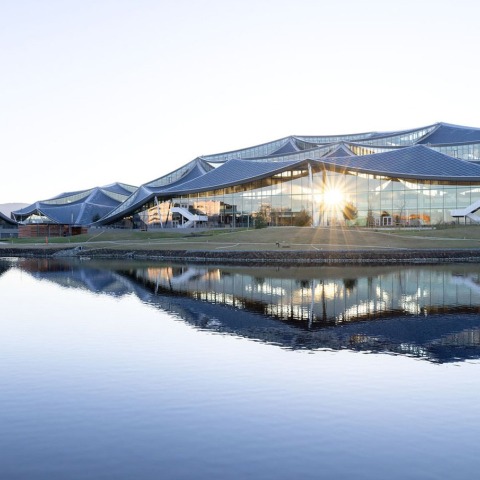 Los edificios se encuentran dispuestos en únicamente 2 planta y mediante una serie de patios consiguen conectar ambos niveles. La cubierta se conforma a través de una especie de tejido orgánico formado por 50.000 paneles solares. La zona superior de los edificios cuenta con una gran marquesina y la segunda planta con espacios de trabajo de gran amplitud y abiertos, ambos se encuentran bajo el mismo techo.