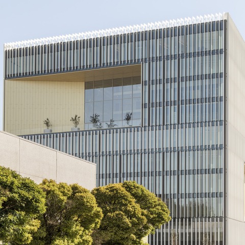Tanto la envolvente de la fachada exterior como interior busca desmaterializar la masa del volumen, dotándola de una cierta fragilidad y elegancia. La oscura fachada de cristal del exterior se cubre con brisoleis blancos inclinados en diferentes ángulos y colocados en diferentes ritmos, mientras que en el interior el vestíbulo vertical formado alrededor del atrio se cubre con perfiles «L» y «T» dorados de aluminio anodizado que cambian de tonalidad de acuerdo al movimiento del sol. El delicado tratamiento del volumen y las superficies, así como la sensibilidad con que se han resuelto los detalles, dan como resultado un edificio de una gran riqueza espacial a diferentes escalas.