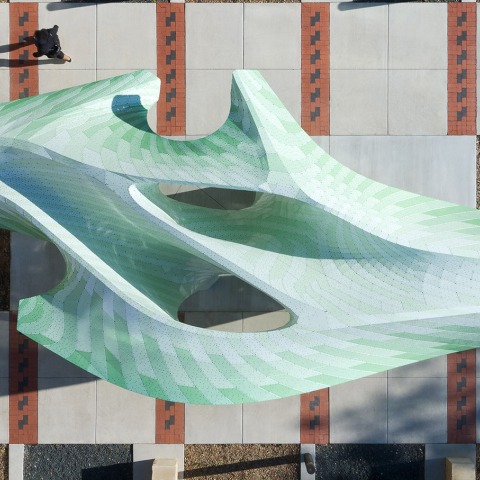 Situado en un eje activo de la vida universitaria, el Pabellón Zephyr, un dosel azotado por el viento, genera un pasaje sombreado en el patio del Residencia de Honor en la Universidad Tecnológica de Texas en Lubbock, Texas. La nueva estructura arquitectónica permanente define un punto de encuentro en la bulliciosa comunidad del campus. Un patio abierto se convierte en un nexo para la fusión de innumerables caminos. Zephyr consigue que un paseo diario sea un movimiento experimental a través de un pasaje urbano. El ascenso y la caída de la forma están influenciados por las diversas rutas de tráfico a través del espacio. Los arcos se curvan a partir de la convergencia de columnas inclinadas y el cuerpo silenciosamente sofisticado abre nuevas vistas a la arquitectura del campus y al cielo de arriba.