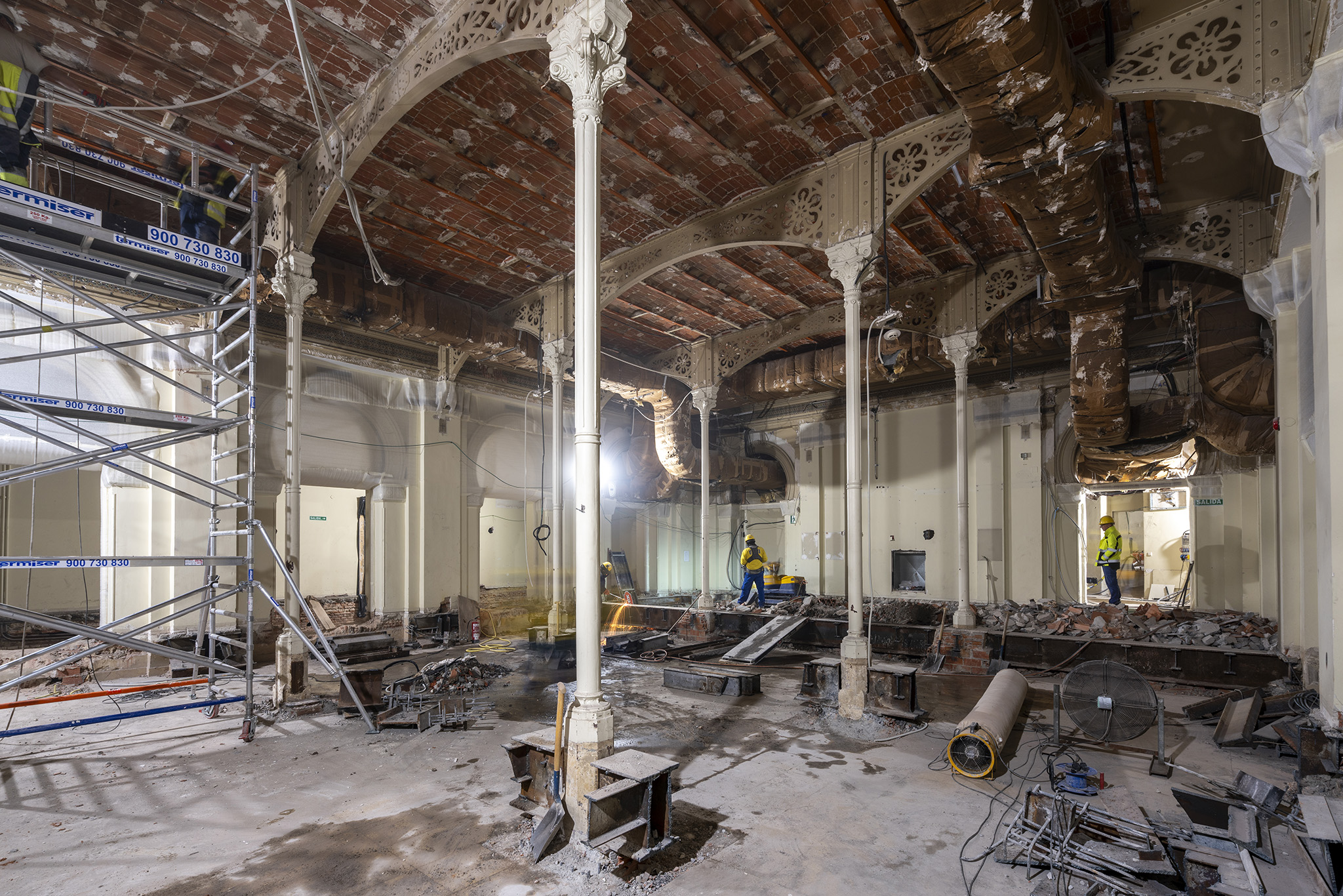 Se trata de un espacio singular donde la tradicional cerámica de producción artesanal se fusiona con el uso de la tecnología más avanzada en el momento de su construcción: el hierro fundido de su estructura y el vidrio traslucido del techo. Historia genuinamente española y la tecnología industrial se combinan reflejando el progreso técnico europeo de aquel momento.