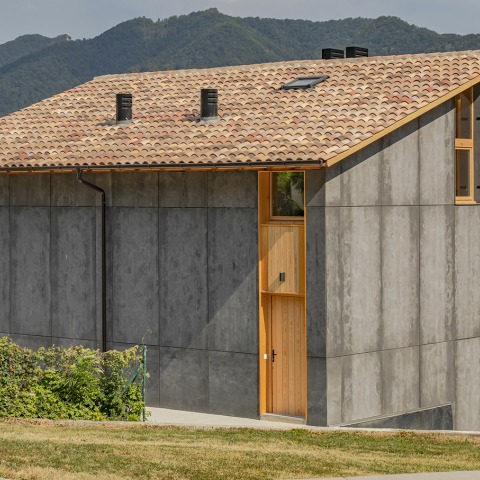 Finalmente, la estrategia formal y de materialidad es una consecuencia de la lectura del paisaje del Bisaura. No solo la madera, la teja y el panel de composité de la fachada evocan al paisaje y a su materialidad sinó que, además, destaca el volumen en sí; las aperturas, pequeñas y verticales; los grandes agujeros a fachada sur, casi como salidas. Destaca la contundencia volumétrica de una pieza casi abstracta anclada al paisaje, como las grandes masías del siglo XIX, tan características de Vidrà.