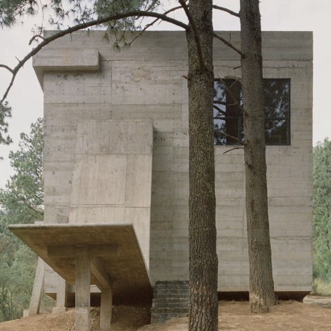 El proyecto busca recrear la sensación de una cabaña suspendida en la topografía natural de su terreno. La estructura expresa un perfecto equilibrio de sus cimientos, generando un singular contraste entre la sensación de ligereza de una cabaña por un lado, equilibrada por el peso de una fortaleza de hormigón por el otro.