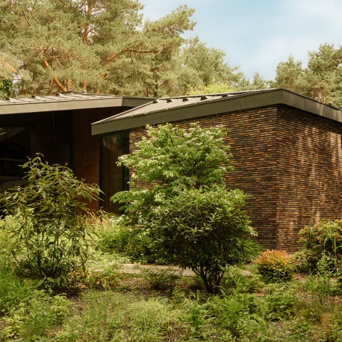 Con esta petición, los viajeros contactaron al arquitecto Wojciech Kotecki, cofundador de BBGK Architekci, y a la arquitecta Katarzyna Mach. El resultado fue la Casa Sadowski: «un hogar propio»: profundamente personal, ligeramente introvertida, pero abierta a su entorno. Una vivienda de una sola planta, organizada íntegramente en la planta baja, enclavada entre pinos. Oculta bajo un amplio techo con una geometría similar a la de una tienda de campaña. Diseñada para que sus habitantes permanecieran siempre juntos.
