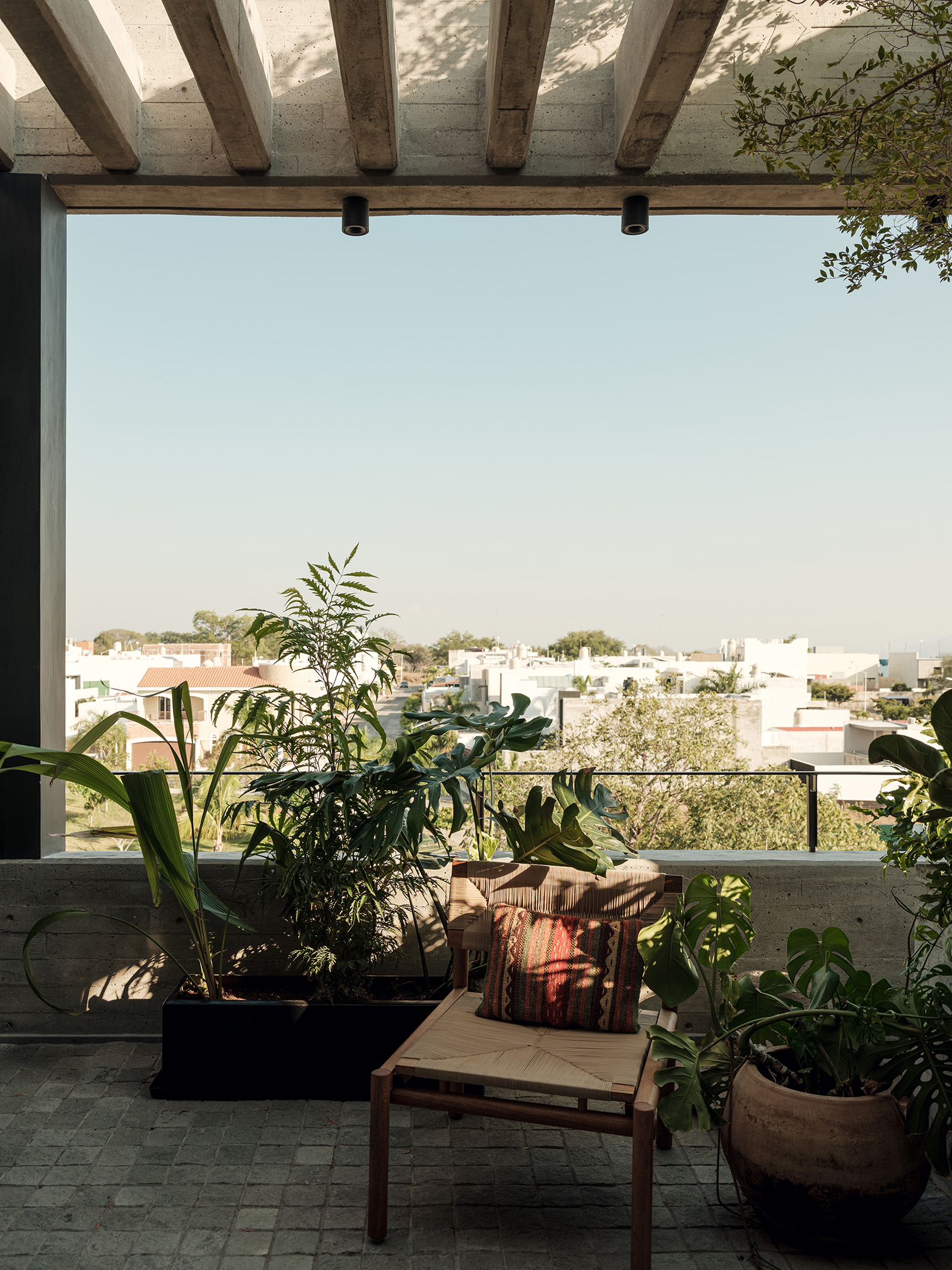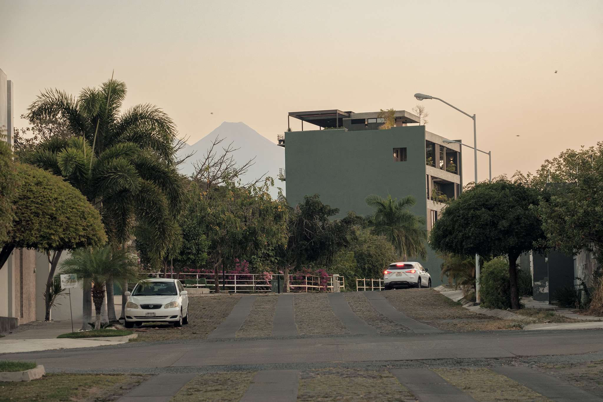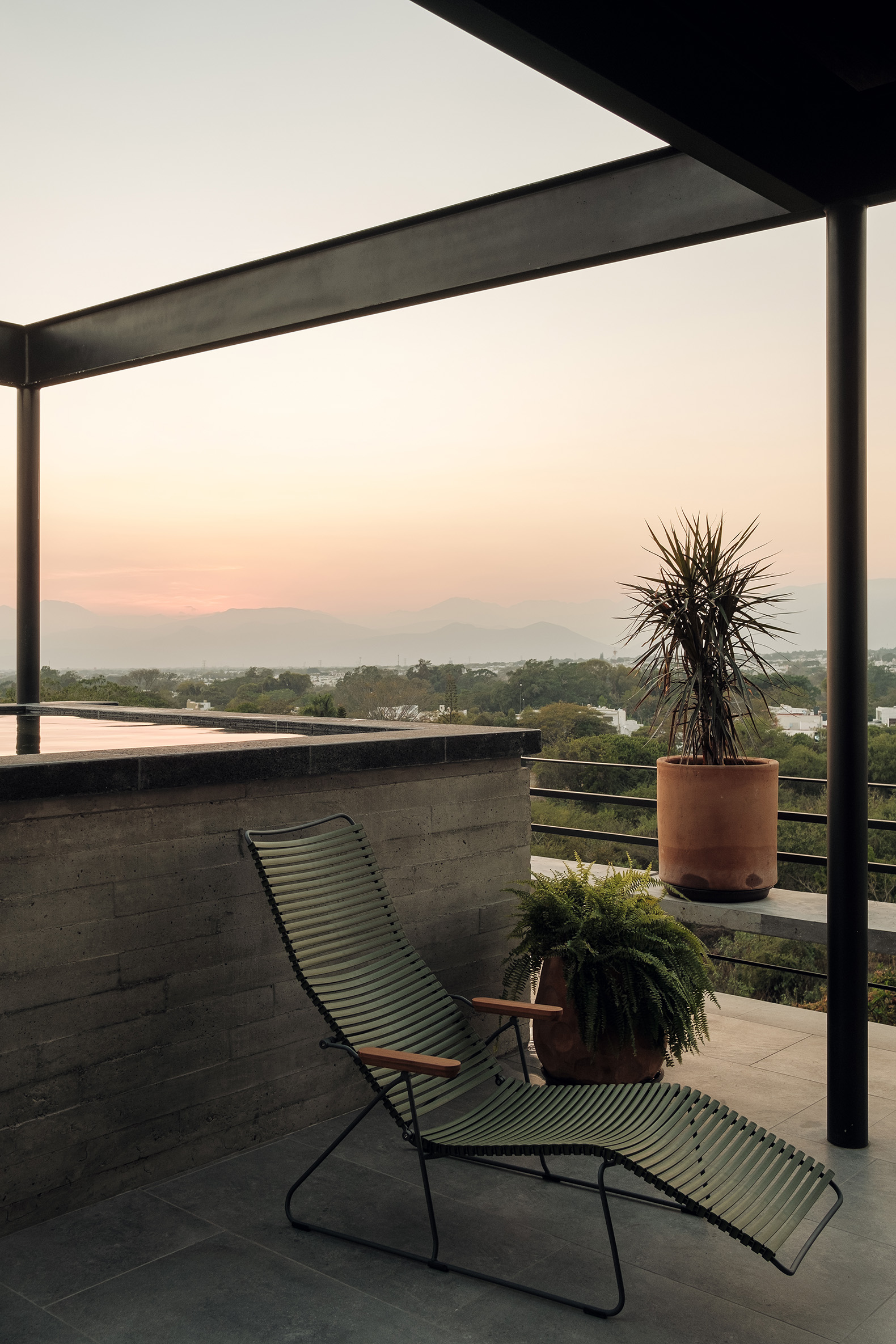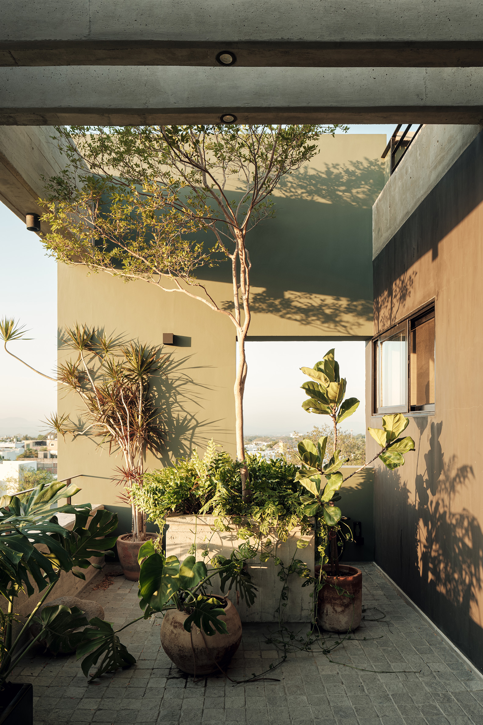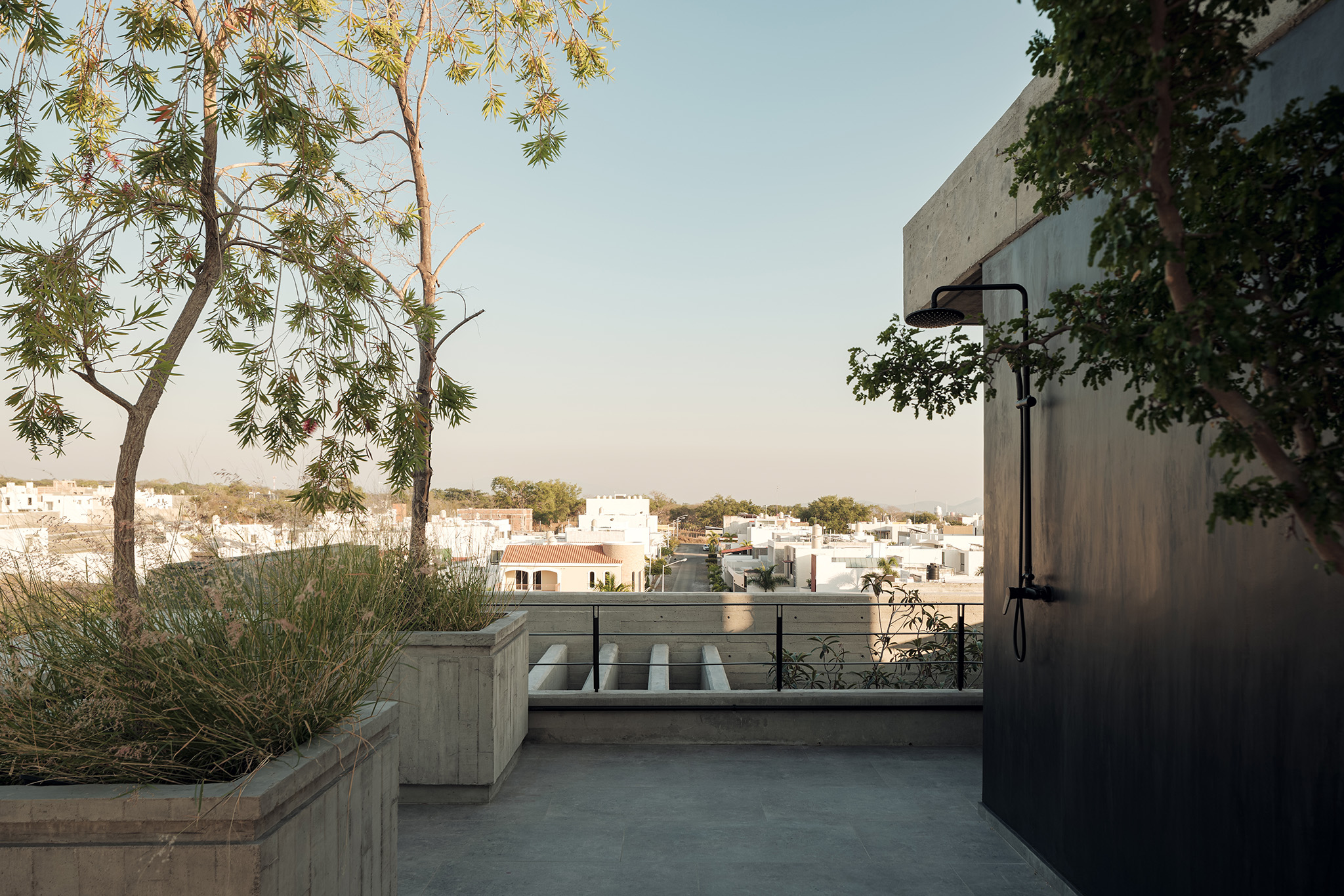 La ubicación estratégica de la torre ofrece un diálogo constante con el paisaje. Hacia el norte, los residentes pueden deleitarse con la imponente vista del Volcán de Colima, un recordatorio de la fuerza y la quietud de la naturaleza. Al sur, la ciudad de Colima se despliega, ofreciendo un contraste vibrante y dinámico. La fachada delantera de la torre, flanqueada por un pequeño jardín y otro arroyo, asegura que no haya vecinos inmediatos, reforzando la sensación de retiro y privacidad.