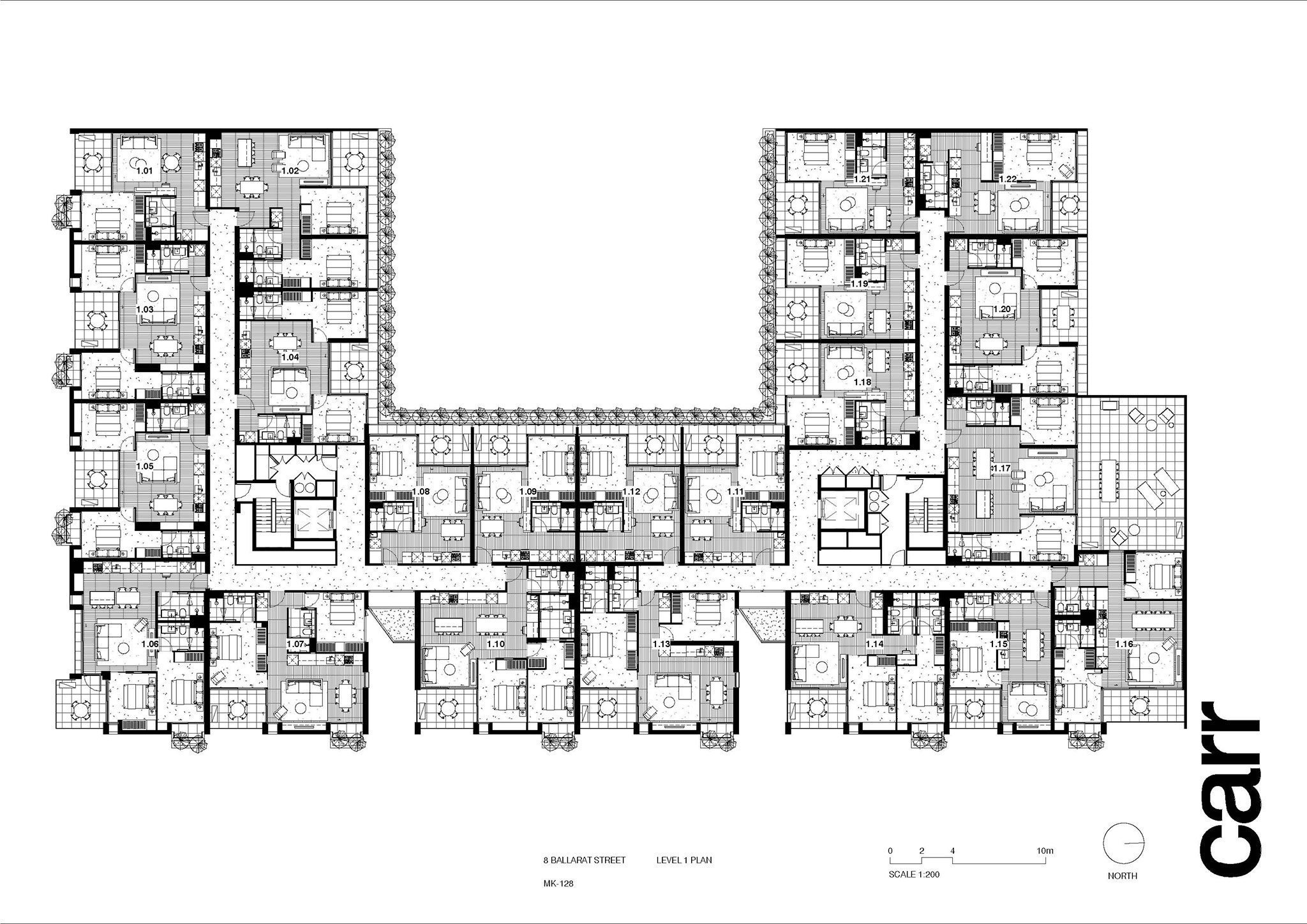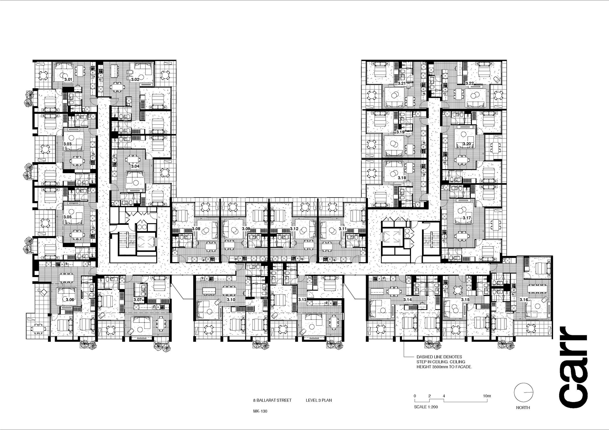 Parte del proceso de proyecto consistió en crear una respuesta arquitectónica que introdujese un carácter residencial más cuidado en una calle marcada durante mucho tiempo por el almacenamiento a gran escala. Inspirándose en la evolución urbana de Brunswick, marcada por una rápida transición hacia proyectos residenciales y de uso mixto de densidad media y alta, Carr busca realizar una contribución significativa ofreciendo una escala y un ritmo más humanos al paisaje urbano.