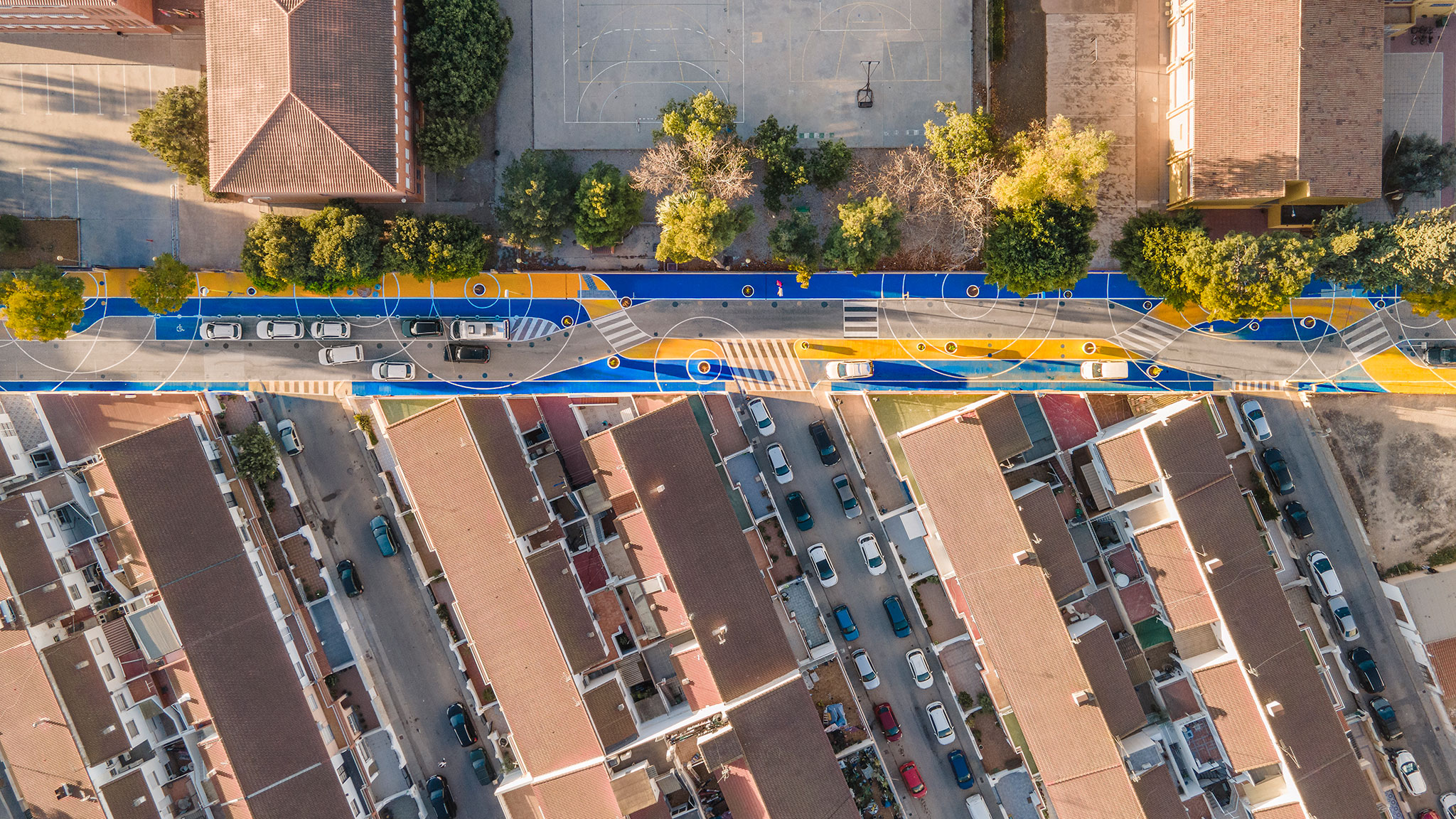 Trenza Urbana es una intervención urbana desarrollada en Torre Pacheco (Murcia), cuyo objetivo principal es transformar una calle de tráfico prioritario en un espacio de convivencia peatonal. El proyecto se sitúa en la calle Miguel de Cervantes, vía que conecta equipamientos educativos clave del municipio y que presentaba un desequilibrio funcional entre vehículos y personas.