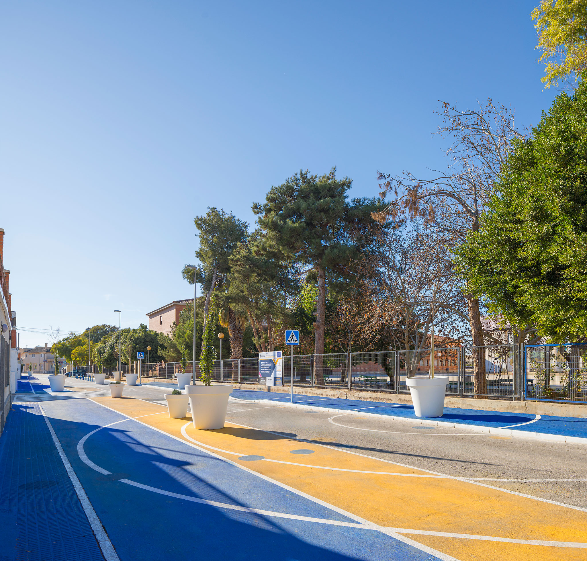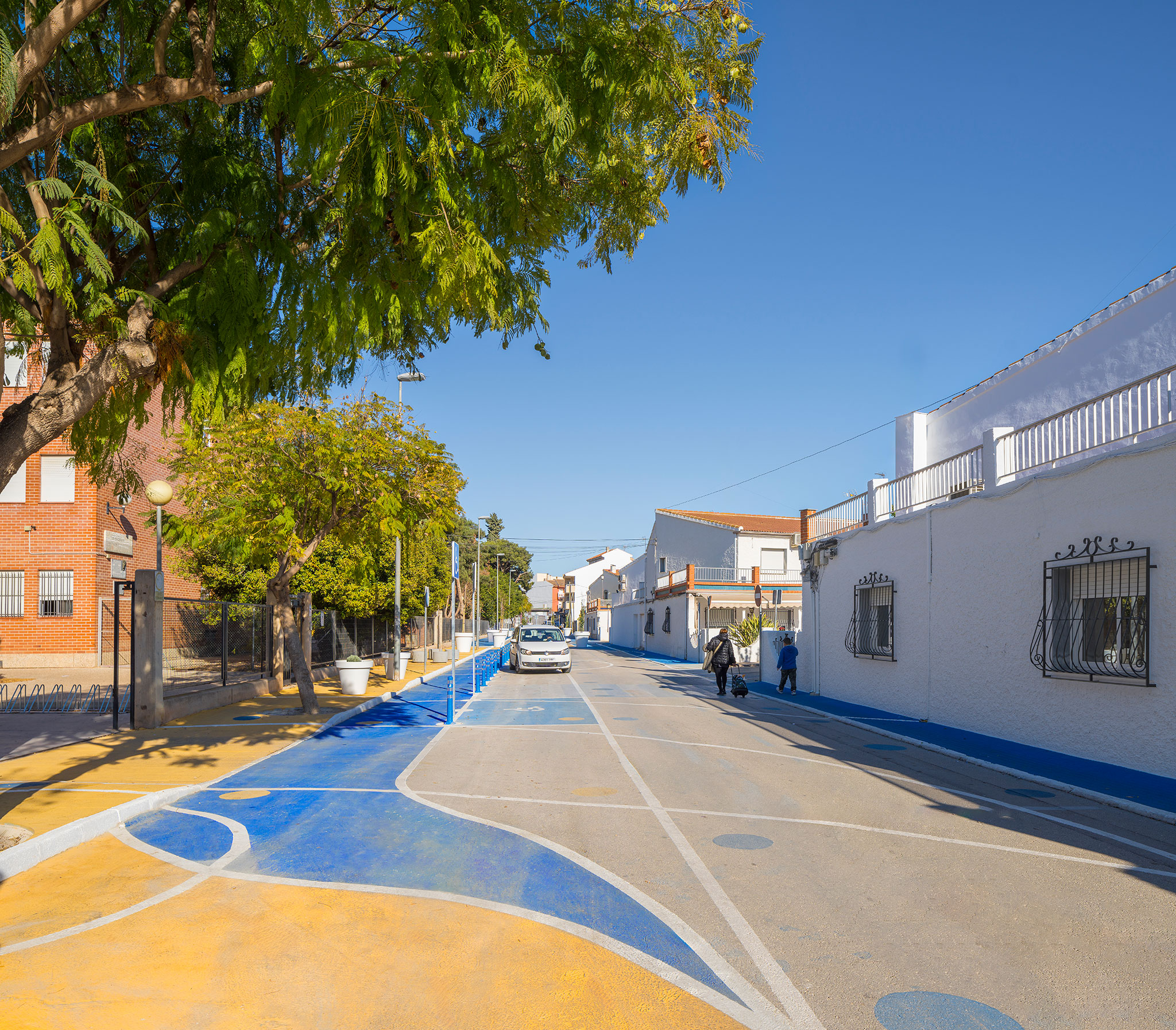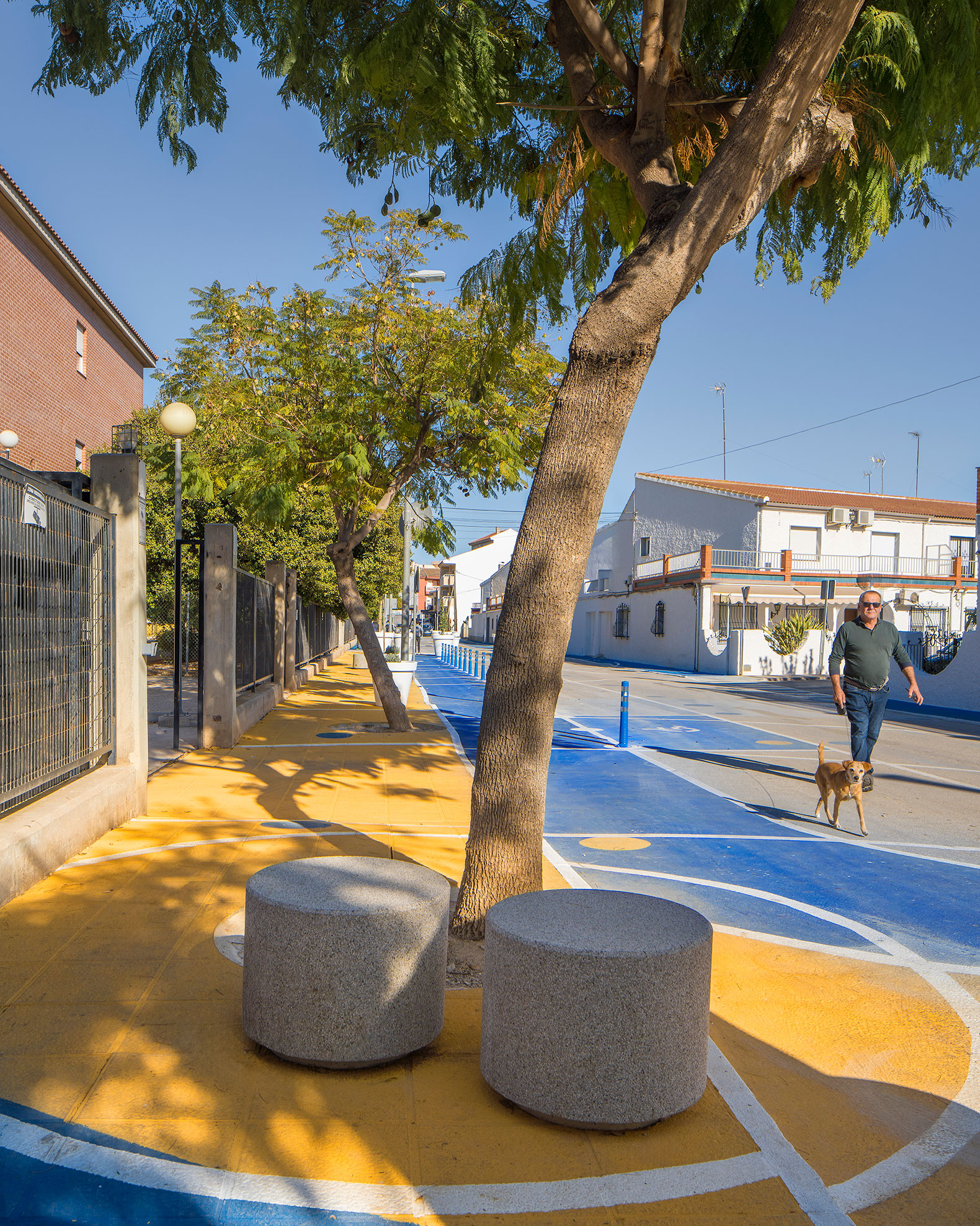 El proyecto por DMDT y Parra Arquitectos, transforma una calle con gran intensidad de tráfico, que conecta equipamientos clave del municipio como el IES Luis Manzanares y la Escuela Oficial de Idiomas, en un espacio de convivencia, recreo y encuentro social.