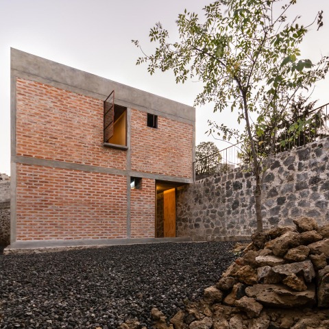 La vivienda está localizada en un barrio informal de la periferia de la Ciudad de México. Esta pequeña casa de 100 m² desarrollada en solo 50 m² en dos niveles se construyó para una maestra retirada.