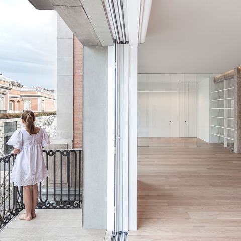 La casa diseñada por Jesús Aparicio cuenta con una vista privilegiada al Museo del Prado, además, se trata de un lugar muy luminoso. La actuación realizada ha realzado la fuerza y la atracción que tiene el museo sobre la vivienda.