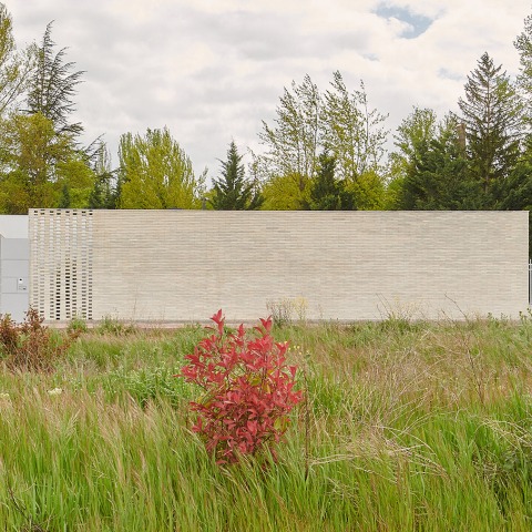 Estas condiciones llevaron a plantear una casa cerrada casi por completo hacia el norte, para protegerse del clima frío y la carretera ruidosa, pero muy abierta hacia el sur. El proyecto, construido fundamentalmente con un ladrillo de hormigón fabricado por una empresa local, se desarrolla en una sola planta en forma de L. El ala más larga es una casa completa en sí misma, mientras el ala más corta puede acoger distintas actividades complementarias o propias de necesidades futuras.