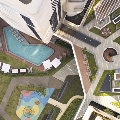 Cada área de la planta baja está generosamente diseñada y diseñada cuidadosamente para satisfacer la cultura de vida al aire libre de Brasil y estimular un fuerte sentido de comunidad para todo el desarrollo. El diseño de UNStudio fomenta la interacción a través de espacios compartidos para diferentes grupos de edad, lo que ayuda a reducir los sentimientos de soledad y aislamiento que son problemas comunes para muchos que viven en edificios de gran altura.