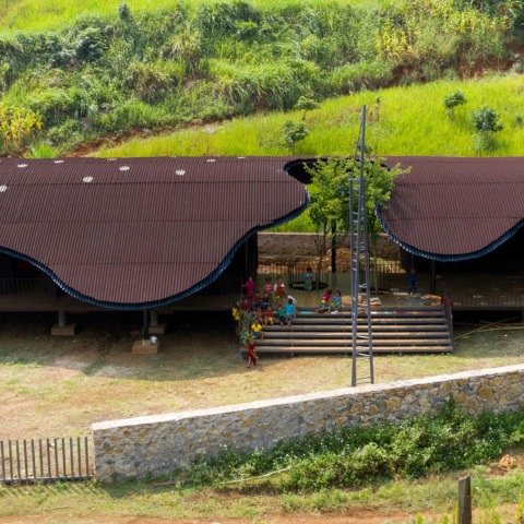 Bó Mon Preschool - La idea de una estación de conexión - La arquitectura no es simplemente un único guión que contribuye a la gama moderada de funcionalidad práctica, estética y sostenibilidad, sino que también debe, en su uso diario, pintar una atmósfera emocionante para sus habitantes. La formación de una arquitectura significativa ha sido mucho más difícil y desafiante que nunca antes con muchas incertidumbres que han ido ocurriendo durante el largo proceso de la construcción, especialmente cuando se trata de un proyecto de caridad con un presupuesto limitado y condiciones de construcción restringidas.