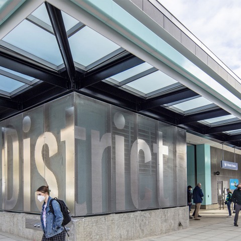 La estación del Distrito U, diseñada en colaboración con McMillen Jacobs Associates, ofrece a los peatones, ciclistas, viajeros de autobús y residentes un centro de tránsito altamente funcional, fácil de usar y de escala adecuada, convenientemente ubicado para sus diversas actividades.