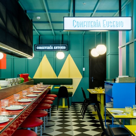 Ambos espacios se diseñan bajo el mismo concepto: una atmósfera despreocupada con un carácter claramente colorido que emplea grandes elementos gráficos de color con referencias a la "Movida Madrileña" y al universo visual creado por Almodovar, el conocido director de cine español.