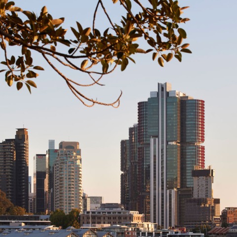 Si bien los sistemas de acristalamiento requieren una gran cantidad de paneles acristalados a medida para hacer frente a la curvatura, también están muy aislados para reducir la ganancia solar y proporcionar una forma acristalada continua que captura y refleja la luz, que cambia a lo largo del día. Las habitaciones y los apartamentos del hotel están diseñados para aprovechar al máximo las vistas panorámicas de la Ópera de Sídney, el Puente del puerto de Sídney y la ciudad, cada uno con una configuración única que se ocupa de los cambios de placa del suelo en cada nivel.