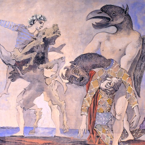 A partir del monumental telón creado en 1936 para un decorado teatral y titulado La Dépouille du Minotaure en costume d’Arlequin, cedido por el artista en 1965 a la ciudad de Toulouse, por entonces capital francesa del exilio español, la exposición se desarrolla en tres espacios de Les Abattoirs que ocupan desde el sótano hasta la primera planta.