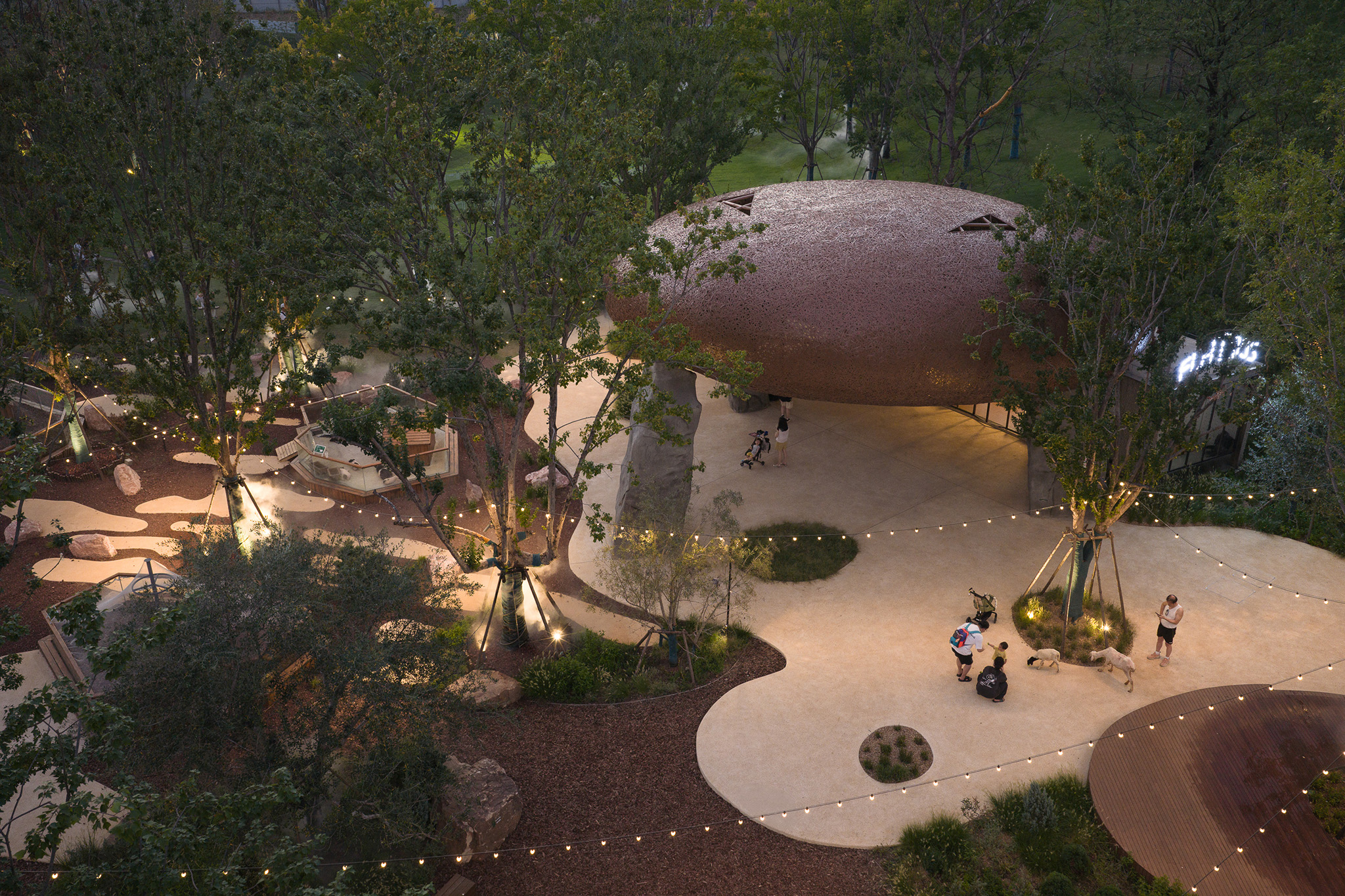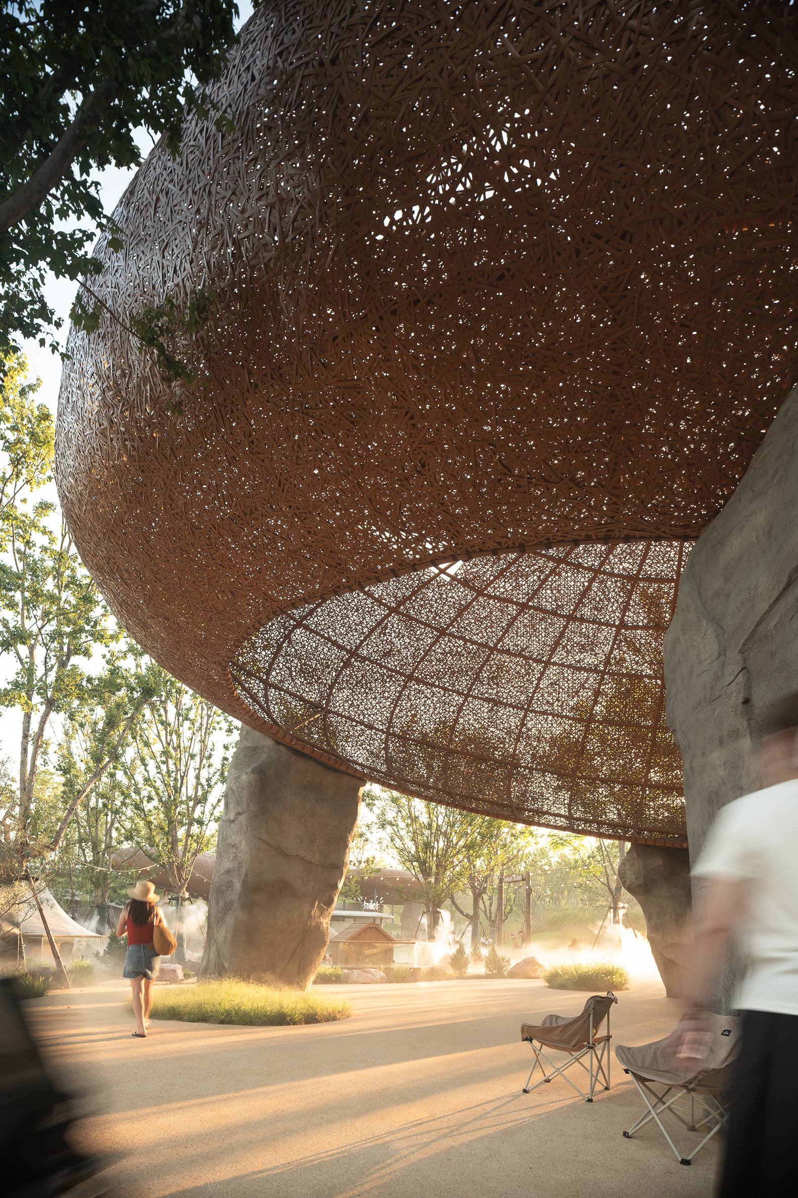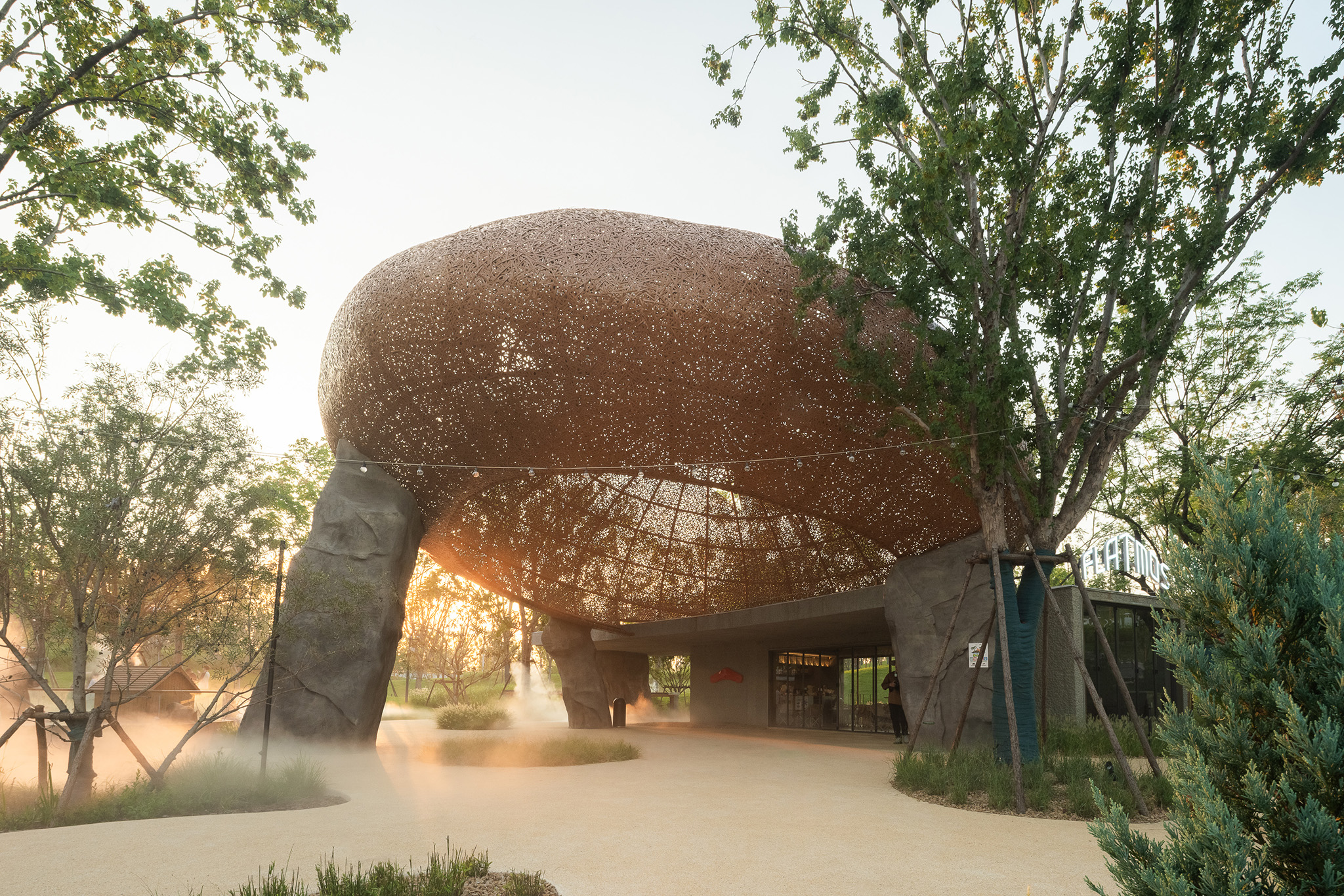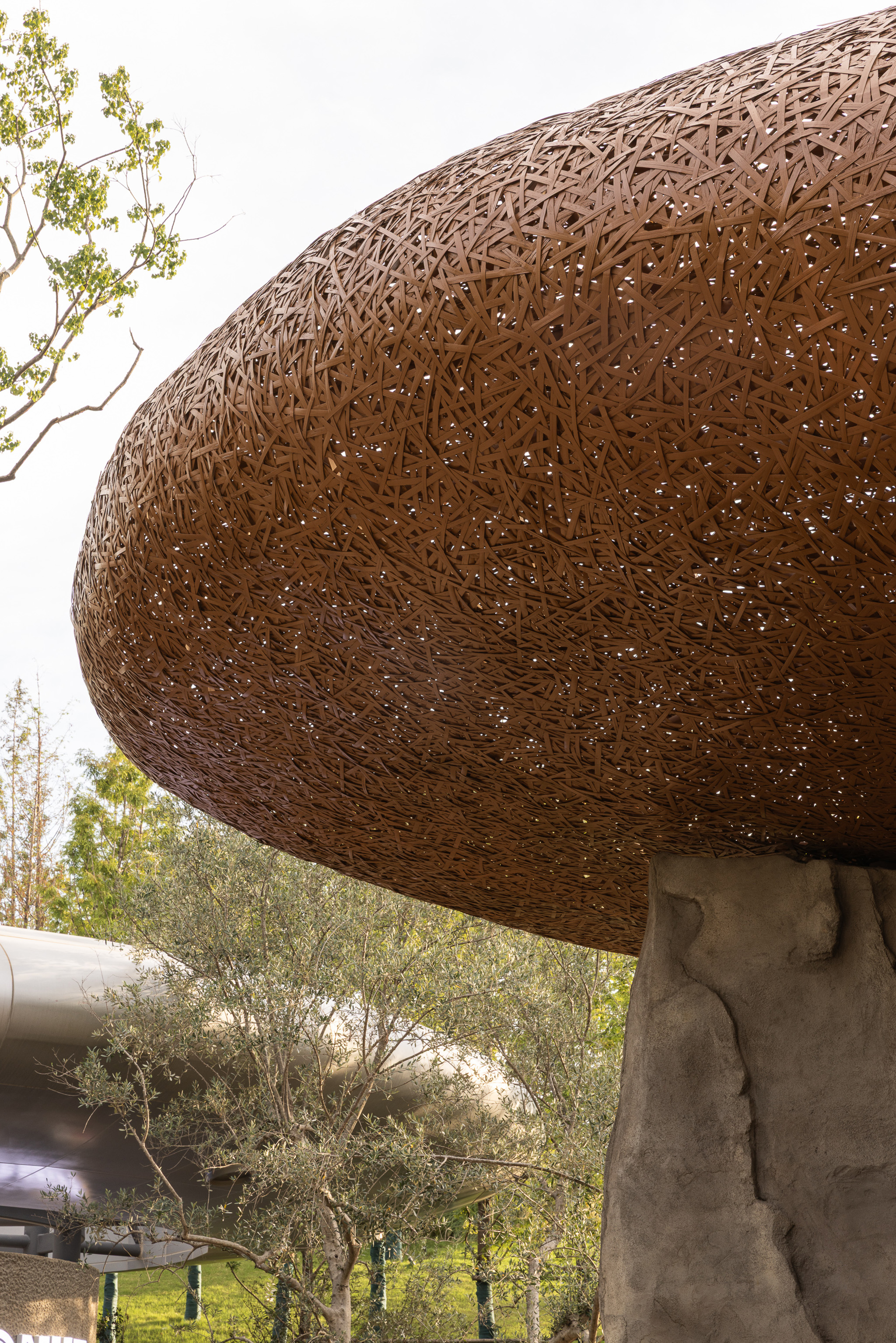 Centrado en los temas de «Futuro, Diversión e Interacción», el proyecto desarrollado por Various Associates adopta formas arquitectónicas que se asocian a meteoritos caídos ejecutados con tejidos de bambú, dando como resultado espacialidades cálidas y envolventes.