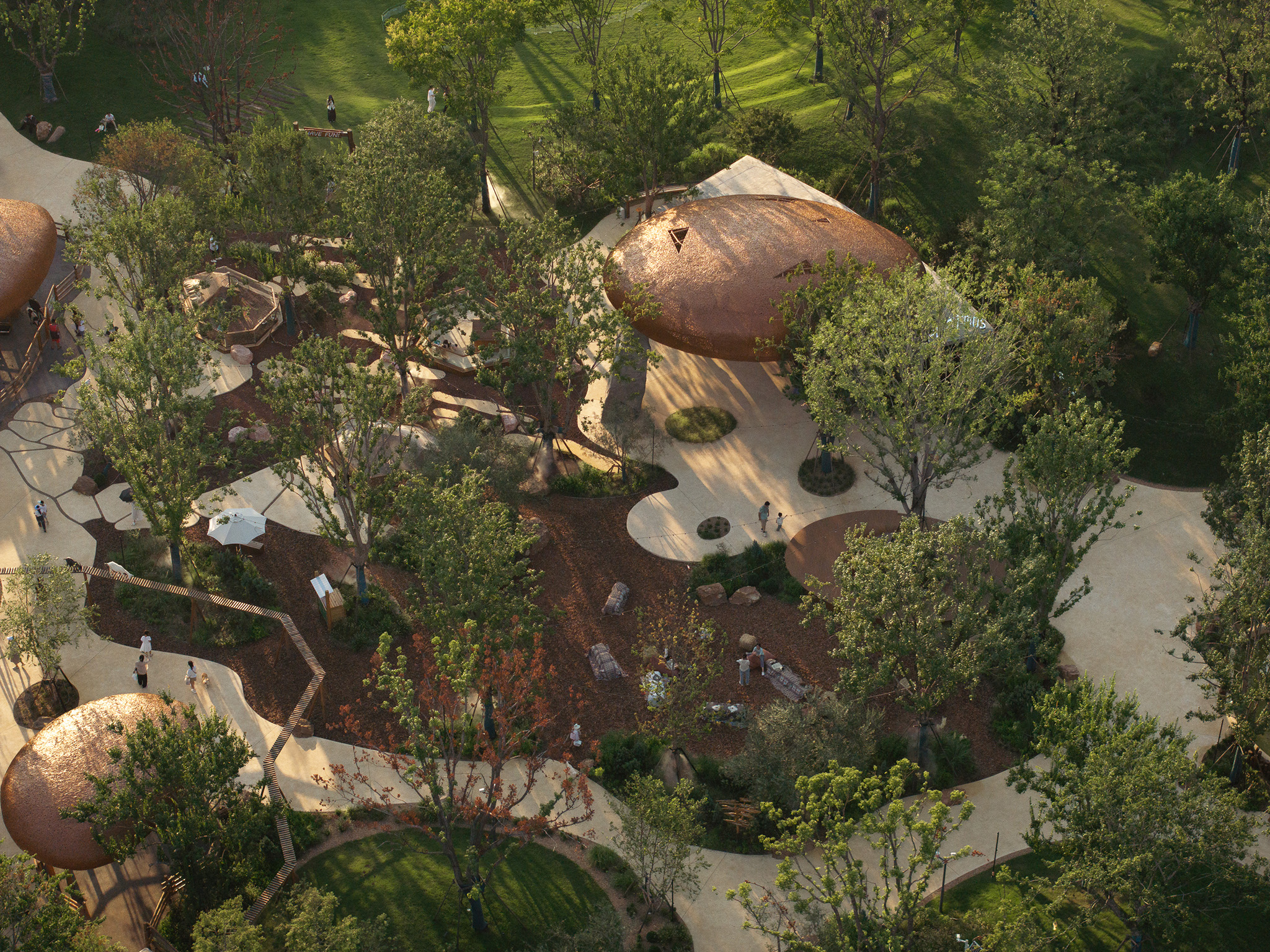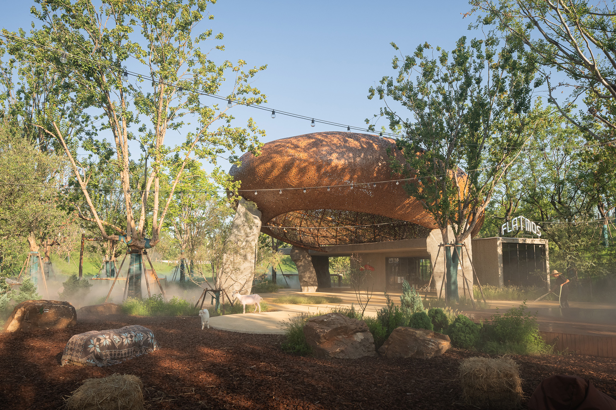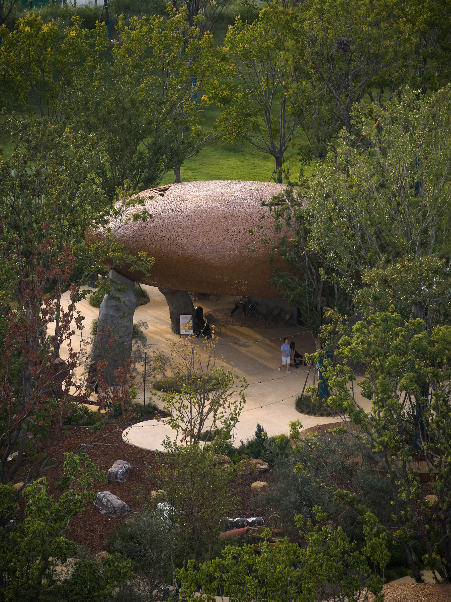 Centrado en los temas de «Futuro, Diversión e Interacción», el proyecto desarrollado por Various Associates adopta formas arquitectónicas que se asocian a meteoritos caídos ejecutados con tejidos de bambú, dando como resultado espacialidades cálidas y envolventes.