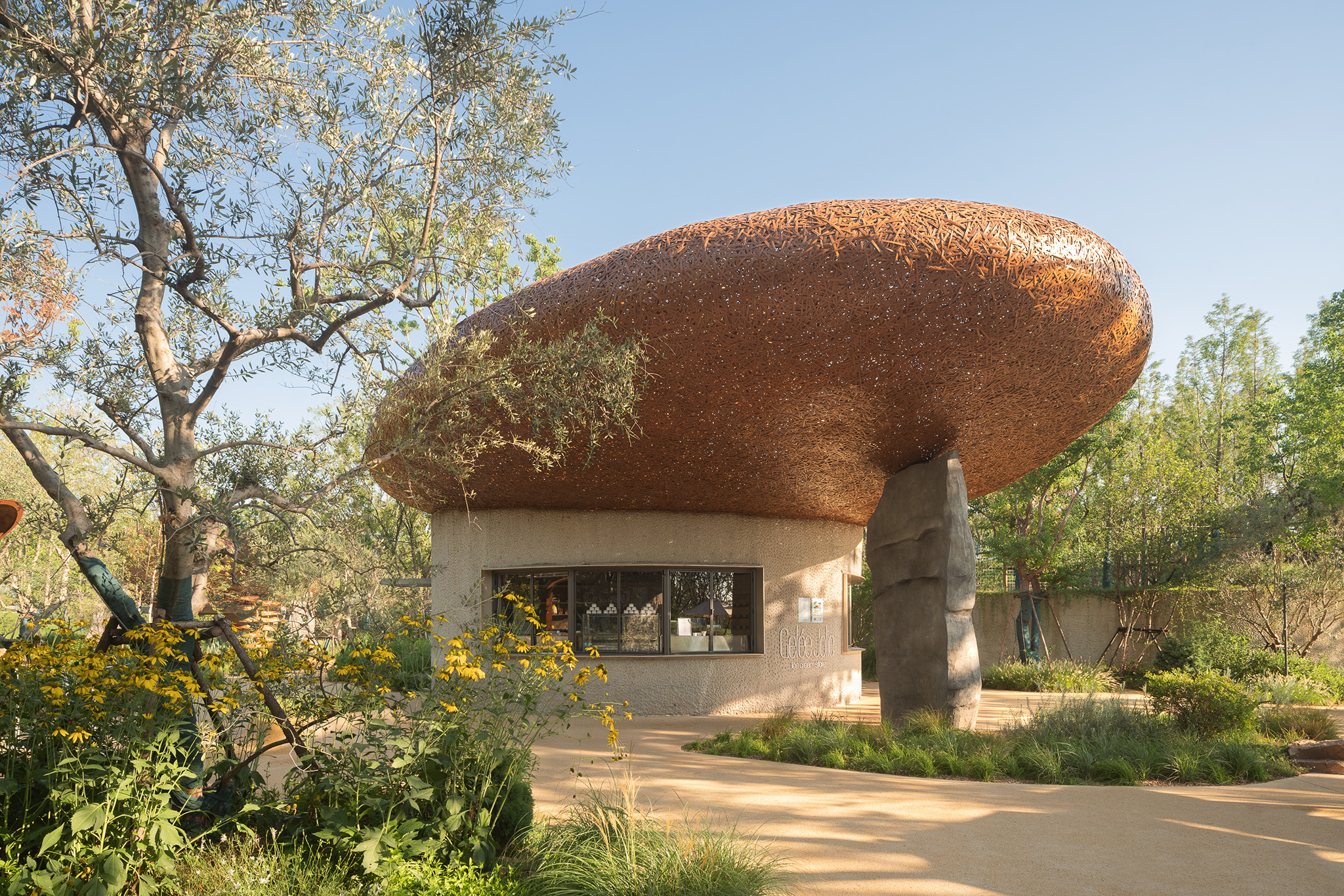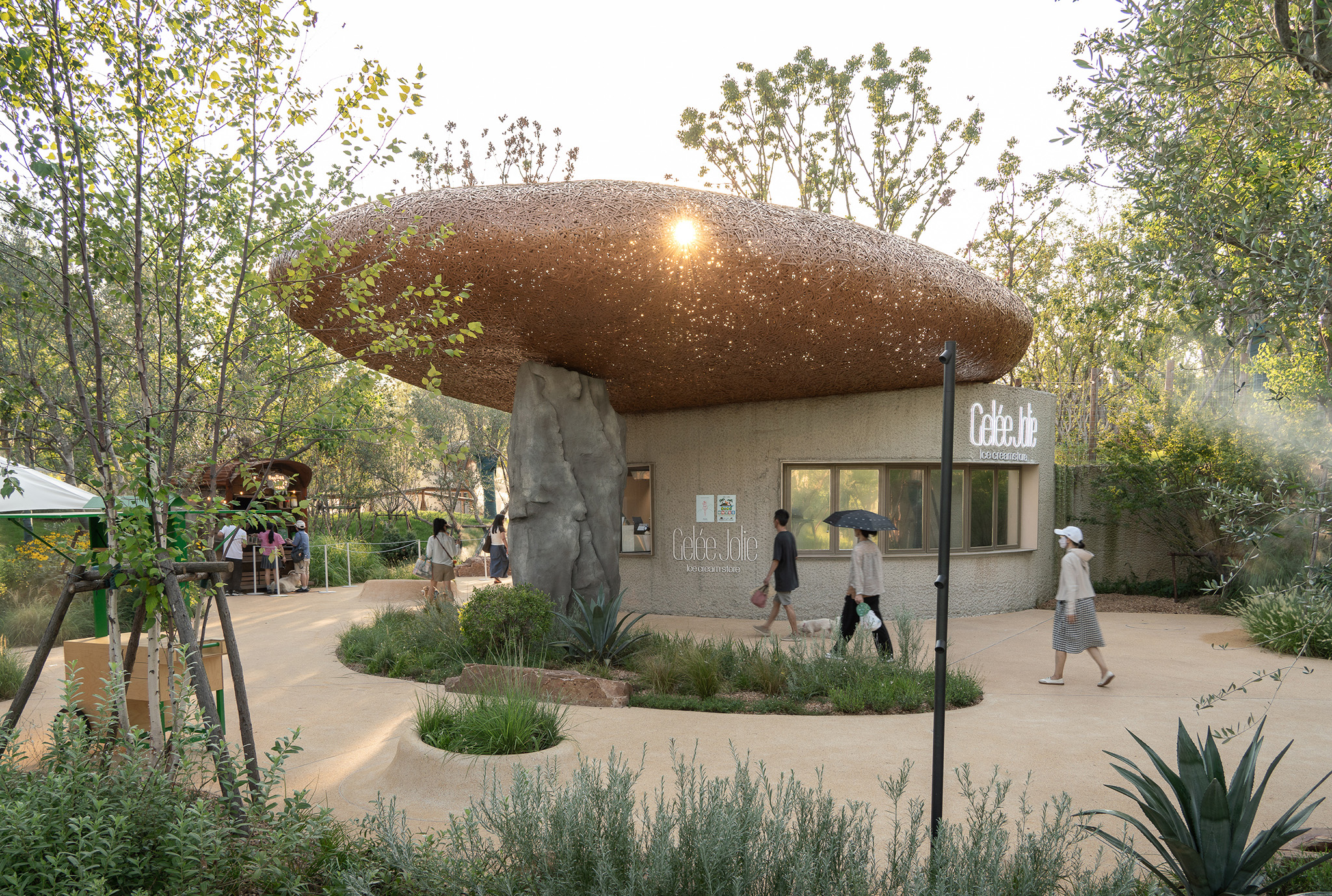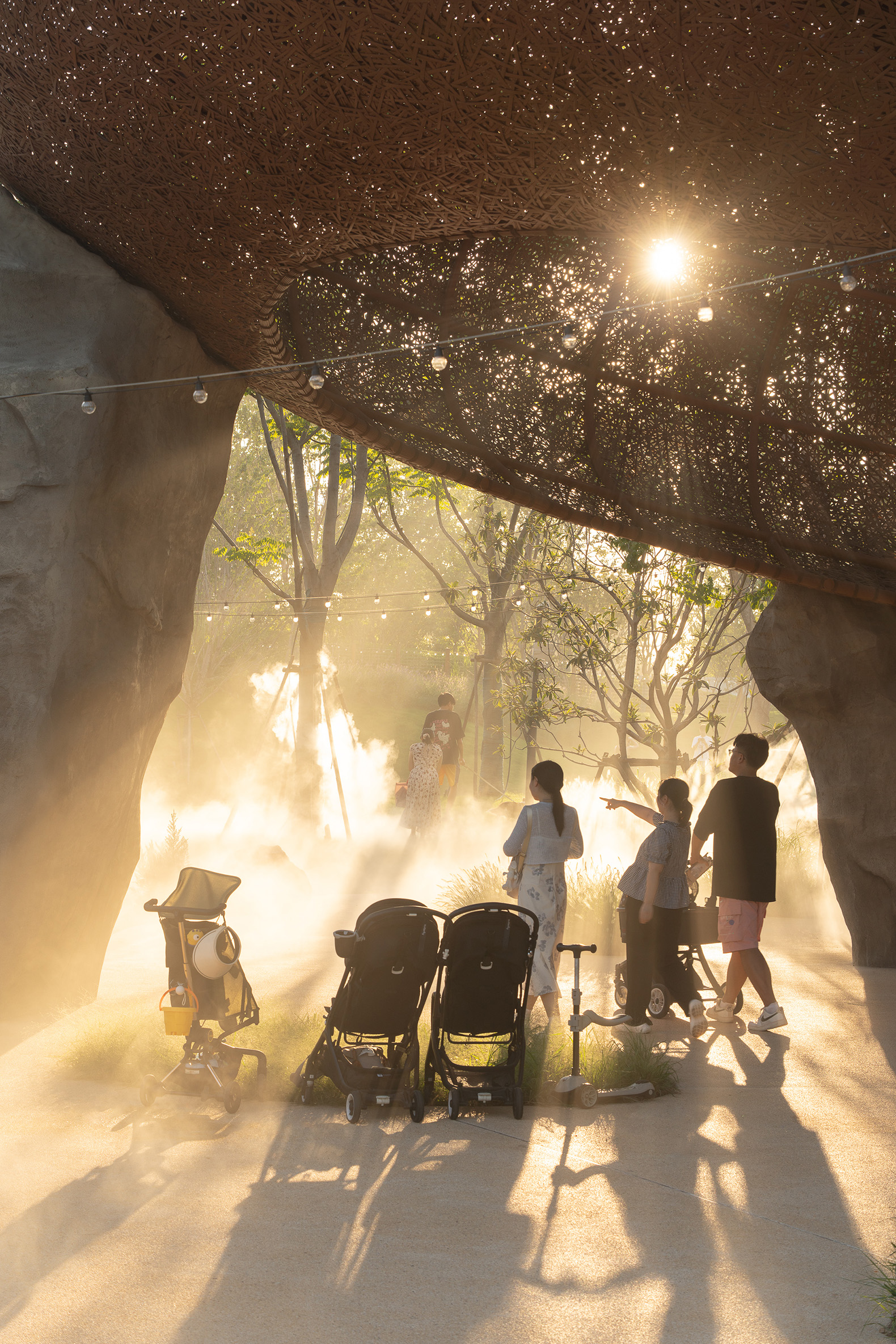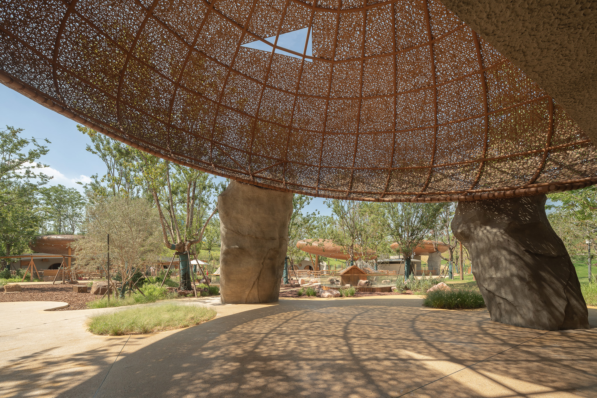 Centrado en los temas de «Futuro, Diversión e Interacción», el proyecto desarrollado por Various Associates adopta formas arquitectónicas que se asocian a meteoritos caídos ejecutados con tejidos de bambú, dando como resultado espacialidades cálidas y envolventes.