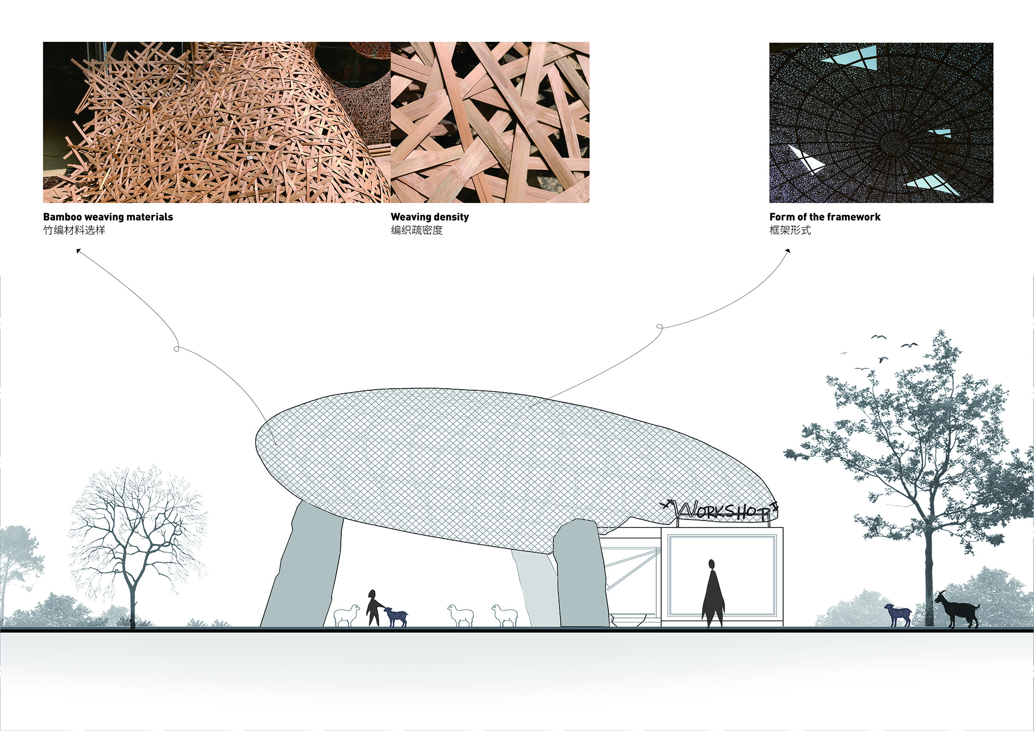 La arquitectura combina materiales naturales: bambú, madera y piedra. El tejido de bambú, símbolo cultural, se reinterpreta como un lenguaje visual contemporáneo. En cuanto a su función, la granja combina la interacción con los animales, la educación para padres e hijos, actividades de mercado y eventos, creando un espacio flexible que armoniza estética y funcionalidad.