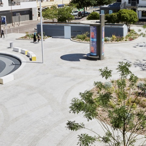 El color predominante es el gris, sin embargo, se utiliza el color amarillo para sobresaltar las partes más interesantes para el juego, tales como los asientos circulares y el tobogán. En los espacios colindantes contaremos con una serie de parterres circulares, que aportarán un toque más de color con su vegetación.