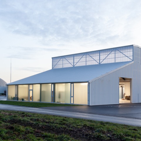 La estructura de acero prefabricado posibilita un diseño arquitectónico limpio y el elemento estructural en forma de viga de celosía crea un tragaluz lineal distintivo en la posición de una cumbrera del techo. La claraboya y las paredes laterales utilizan perfiles translúcidos, por lo que la estructura de celosía se asoma y se convierte en un elemento característico de la expresión del edificio.
