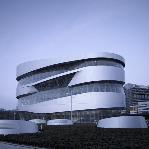 El notable diseño del Museo de Mercedes-Benz hace que los visitantes se olvidan de que están en un museo. Basado en un concepto único de hoja de trébol, que se compone de tres círculos que se superponen con el centro quita para formar un atrio triangular.