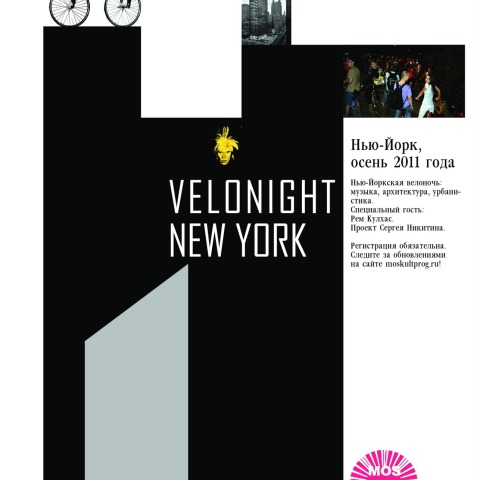 Arquitectos de fama mundial y los historiadores culturales, incluyendo Rem Koolhaas, Nordenson Guy, Jean-Louis Cohen, Peter Eisenman, Ken Jackson, Fletcher Tony y otros, narrarán el recorrido en bicicleta a la luz de la luna, llevando a los participantes desde el Museo Guggenheim hasta el centro de Manhattan, recorriendo iconos pasados (y fracasos) de la arquitectura de Nueva York, la política urbana y la vida social / cultural, que culmina con un picnic de madrugada en el muelle 1 del Parque del Puente de Brooklyn. Los socios oficiales de Velonight en Nueva York son New York Historical Society, y las siguientes publicaciones internacionales y de EE.UU.: Log, Abitare, Domus, Rusia e Image. El VELONIGHT NYC es gratuito. Para registrarse, dirigete a: http://velonightnyc.blogspot.com.