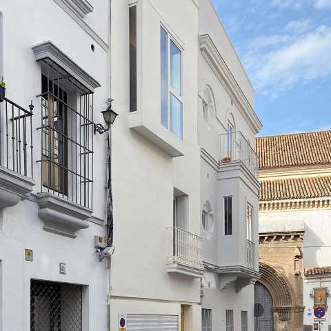 A través de los pasos de un lado hacia el otro de cada casa, se iba configurando entre ambas una especie-espacio de umbral. Este umbral es el que hemos querido que se viva en cada tránsito interior, en cada cruce de una estancia hacia las otras. Sea cual sea la casa de origen, la otra se convierte en su umbral, en espacios de recibimiento. Una casa sirve de recibimiento a la otra, transformándose en una memoria de los que vienen. Desde este umbral, una linterna vertical, capturada del recuerdo de los vestíbulos de las madrazas de la arquitectura islámica, se convierte en un ojo indiscreto por el que pasan todas las vidas: de una casa hacia la otra. Estancias: Viéndolas venir. La linterna es el fondo de escena para las nuevas estancias, además de su preámbulo. Un deambulatorio encajado entre el muro de una casa y otra. Se rehabilitan los muros de las antiguas casas para configurar 3 estancias autónomas superpuestas, que se asoman de modo diferente a la calle. La relación de estas estancias con la calle organiza el programa. En la estancia inferior se sitúa un dormitorio estudio y en la superior se conforma una pareja de estancias entrelazadas, en las que se presta especial atención al entorno patrimonial visible desde el interior. Estas tres estancias no proponen un espacio fluido, moderno, si no que pretenden estabilizar los momentos a la espera de los acontecimientos domésticos.