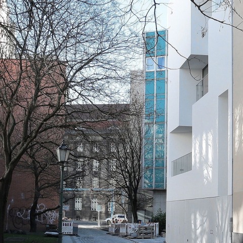 Aquí en Berlín Mitte, en Waisenstrasse, enfrente de las antiguas murallas de la ciudad, había una parcela de 520 metros cuadrados donde todavía pueden encontrase algunas estructuras medievales aisladas. El potencial de la parcela y la situación de la luz suponen un gran desafío, no sólo por la compleja geometría del solar, sino también por las seis o siete plantas de los edifico que lo bordean. Las otras dificultades fueron las normativa constructiva, por las percepciones del Landesdenkmalamt (comisión de edificios emblemáticos), y el deseo del propietario y los inversores por sacar el máximo provecho del espacio con un diseño de gran calidad arquitectónica y espacial.