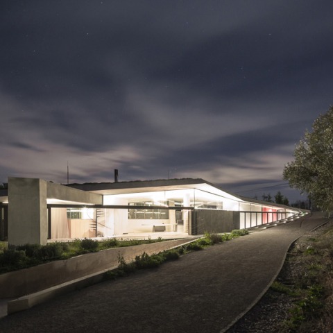 Existe una tensión, se busca la fusión de la residencia con su entorno circundante: a través de enterrarla parcialmente en el terreno y cubrirla simultánea por el cuerpo alargado, terroso. La sostenibilidad del proyecto se alcanza principalmente por medios pasivos y se centra en ese doble gesto. La introducción de los bordes de la vivienda en la tierra de Attica y el posterior nacimiento de la azotea verde desde la misma tierra, crea una forma aguda, se inserta suavemente en el surco de los olivos. La conservación de la energía pasiva se consigue mediante el enterramiento y el recubrimiento de tierra intensifica la protección, en voladizo suspendido del techo. Su soporte nace de dentro, trabajando con las fuerzas se han ido creando los espacios de la residencia. El sistema estructural elegido es el hormigón armado, cada una de las columnas planteadas tiene una sección transversal diferente y algunas de ellas son construcción compuesta. Todas las vigas están invertidas, excepto una, la de la chimenea: una escalera de caracol metálica detrás de ella conduce, a través de una escotilla en el techo, a la pequeña cubierta verde circular. El sentido del techo de concreto de hovering se paliado por las superficies de metal y vidrio, ya sea fijo o móvil. En el extremo sur de la cordillera un contrafuerte de nueve metros revela la menos amable, el lado menos integrados de la residencia, junto con un espacio adicional, abierta sur. Este soporte triangular define el paso principal hacia el espacio semi-abierto del sótano . La sinergia entre el diseño arquitectónico y estructural es absoluto el análisis estructural no lo siguió. Este último fue investigado desde el principio, cincelando los interiores, determinando la forma, que era a su vez determinada por la inclinación misma del campo circundante: la irregular forma romboidal de la residencia fue impuesta por su inherente longitud , así como por su orientación hacia el mar, el golfo Euboean.