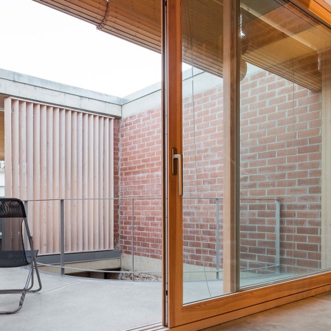 La relación de ese continuo interior con la calle y el jardín se produce siempre a través de espacios intermedios: patio, porche, terrazas y balcones. Éstos se protejen con filtros solares y visuales, y hacen de cojín térmico al mismo tiempo que aportan privacidad y diferencian los diferentes usos.