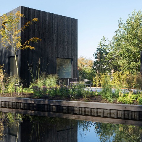 En medio de la naturaleza, en el plassen de Vinkeveense, los arquitectos de interior i29 y Chris Collaris diseñaron una pequeña casa de vacaciones.