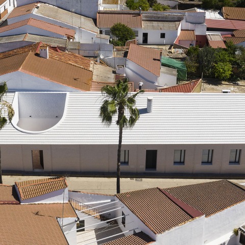 En Alosno, un pueblo pequeño del Andévalo onubense, conocido por sus fandangos y sus chacinas de cerdo ibérico, la cercanía a las minas de Tharsis y su arquitectura inglesa, se nos encarga una casa de pueblo tradicional, con un programa compacto muy compartimentado que incluye además un garaje exento de la vivienda. Otro requisito será el disponer todo el programa en una sola planta, en una parcela de siete metros de fachada y cuarenta de profundidad.