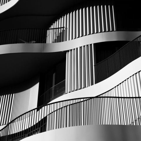 Para habilitar la vida interior y exterior, todos los apartamentos están diseñados con balcones curvilíneos que se estrechan en cada extremo para evitar la necesidad de que los vecinos abran las paredes laterales del balcón, lo que generalmente obstruye las vistas laterales desde los balcones. Para evitar la superposición de vistas entre vecinos, los balcones curvilíneos se encuentran estratégicamente ubicados el uno con respecto al otro, de modo que cada balcón disfruta de vistas de 180 grados pero nunca en el balcón vecino.