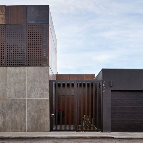La planta baja del estudio alberga una sala, área trabajo, estación de café y medio baño; la planta alta cuenta con un gran librero, una mesa de juntas y área de trabajo y una pequeña terraza. Esta terraza da vista hacia la calle, y para no perder la privacidad se diseñaron unas placas de acero perforadas que van tomando carácter a través del tiempo con su patina. Estas grandes placas se pueden abrir y cerrar para controlar la luz y ventilación deseada.