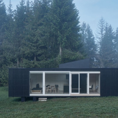 Los 40m² tienen una caja negra central que crea 5 áreas diferentes, cada lado es parte de un área particular en el Refugio. Las puertas correderas en las esquinas crean más espacio y las diferentes áreas se pueden dividir por completo.